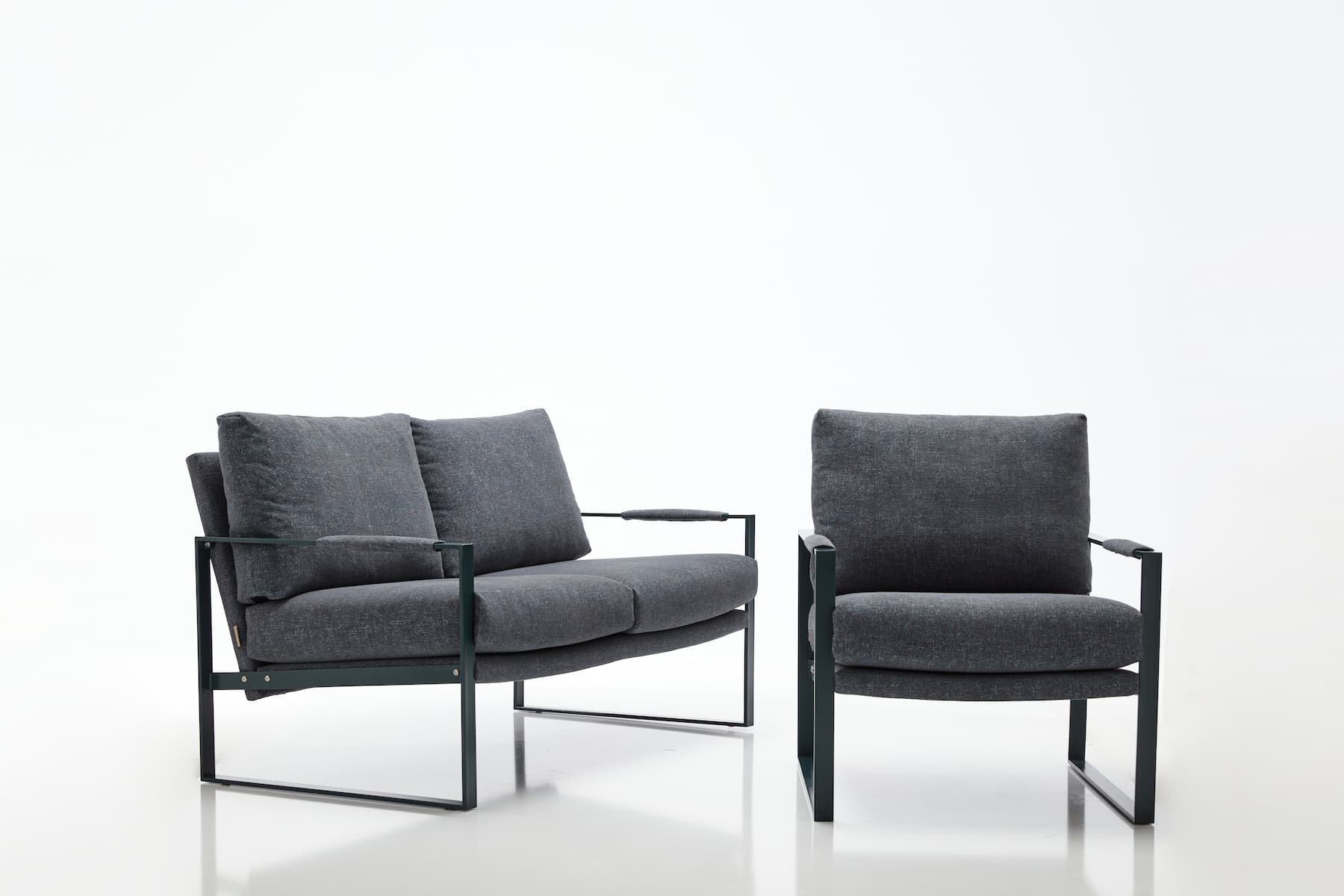 Двоен диван FOLO може да се комбинира с кресло от същата серия за още по-стилен и завършен интериор.