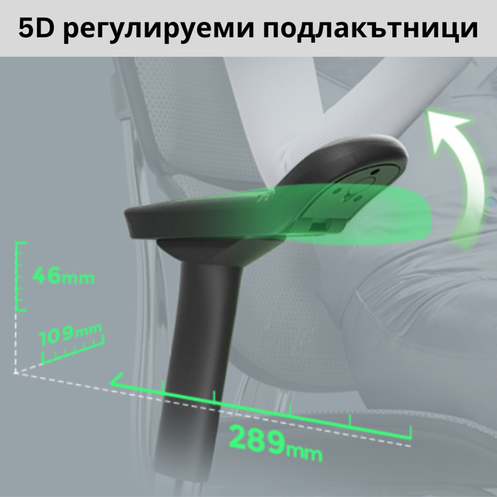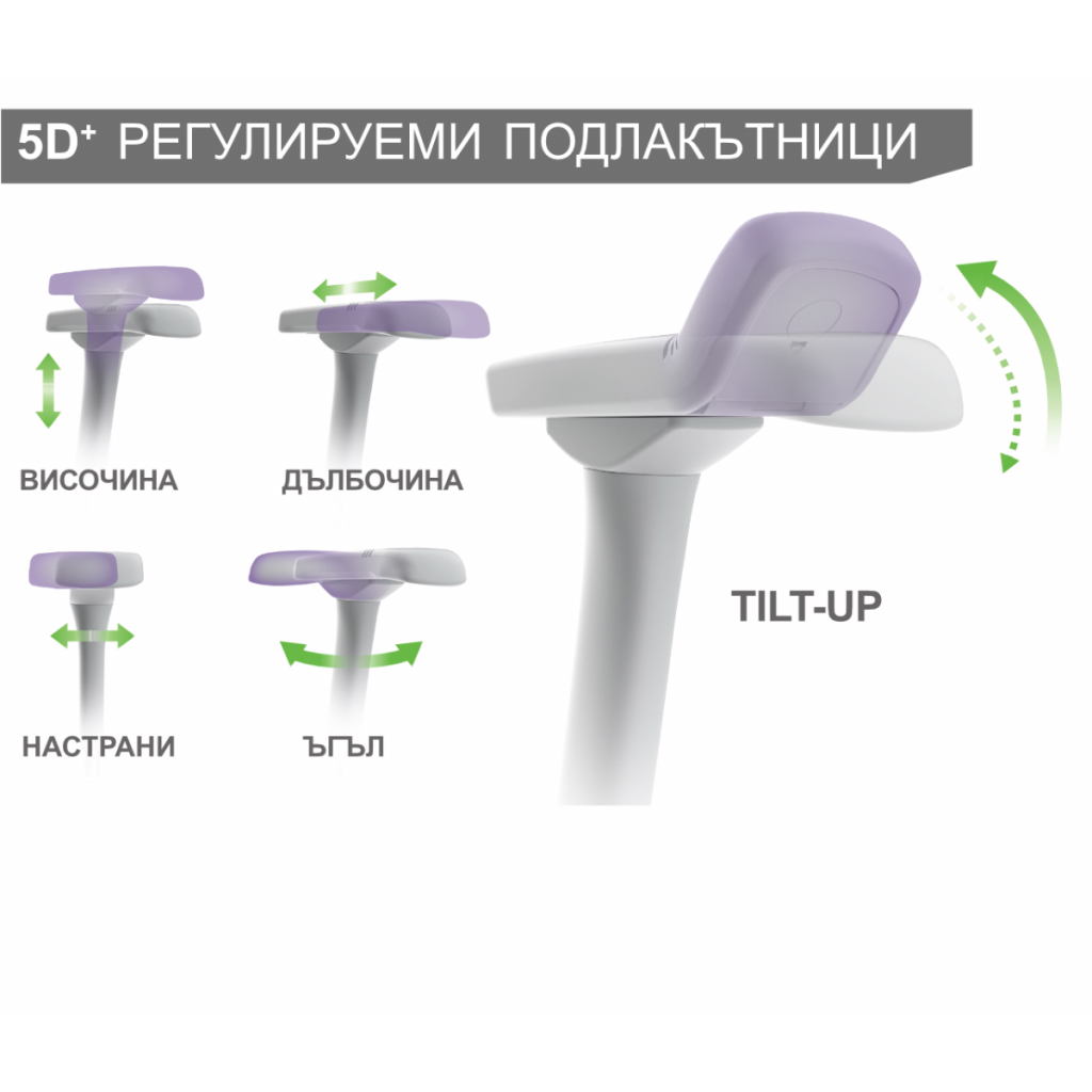 • 5D регулируеми подлакътници с меки полиуретанови падове за оптимален комфорт;