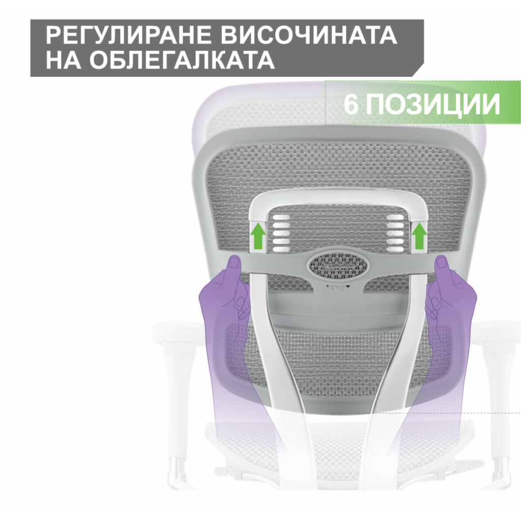 • Регулируема височина на облегалката в 6 позиции;
