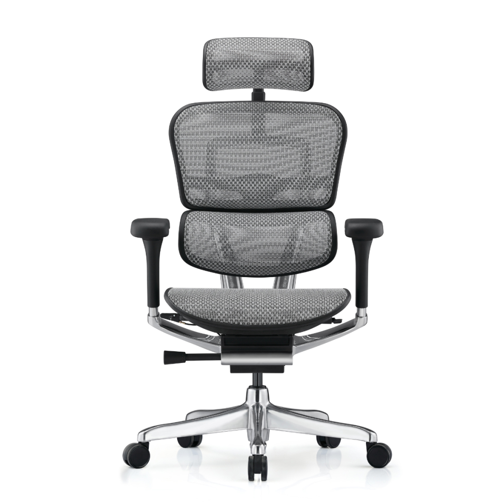 Ergohuman New - сив е висококачествен ергономичен стол, създаден за интензивна ежедневна употреба и максимален комфорт. Столът разполага със стабилна метална основа от полиран алуминий, осигуряваща надеждност и елегантна визия.
