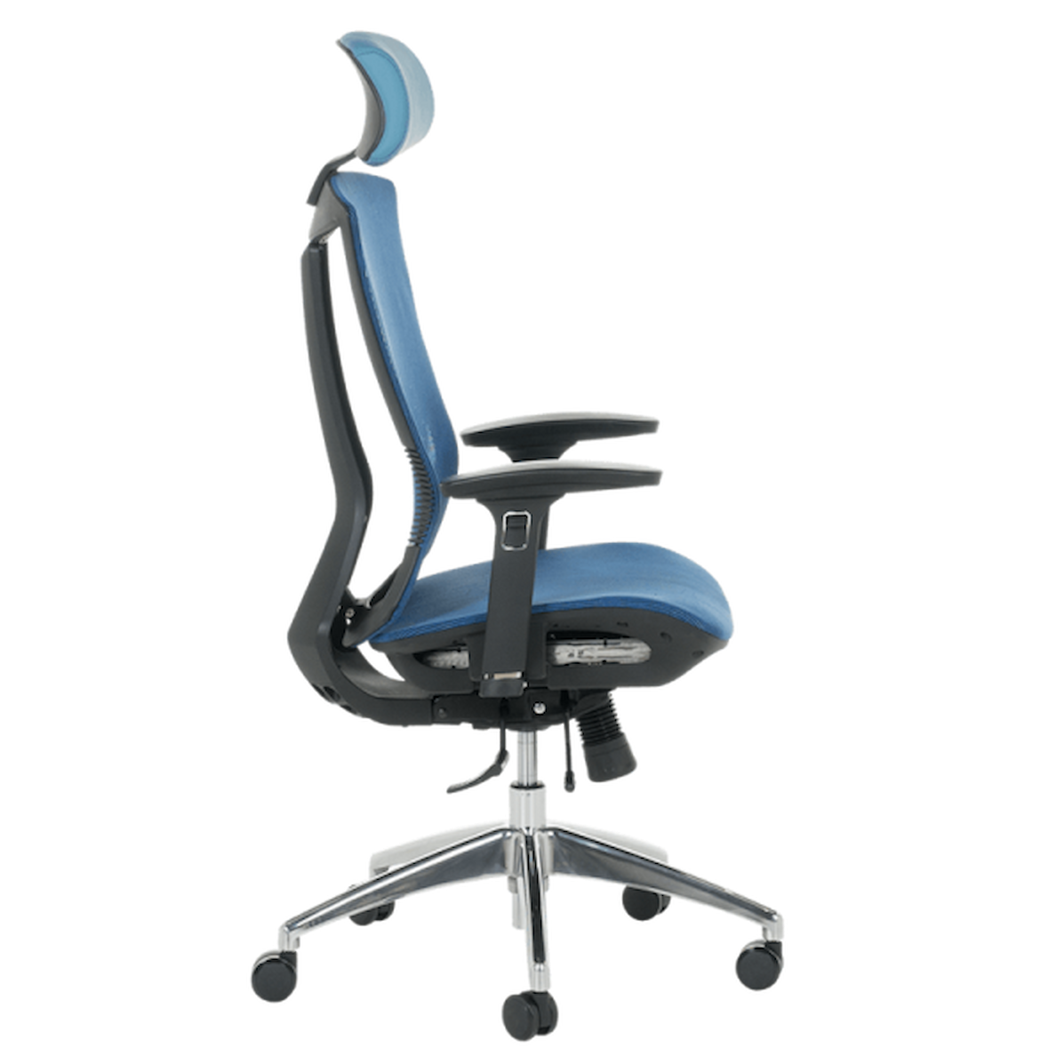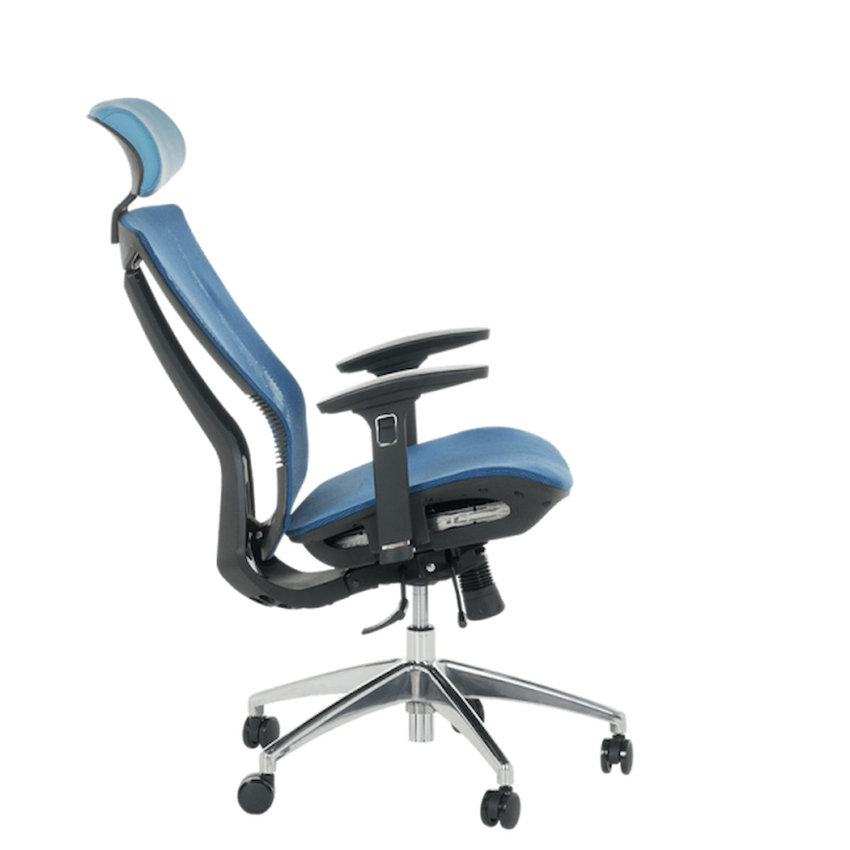 Алуминиевата основа осигурява стабилност, а силиконовите колелца са подходящи за твърди подови настилки. Carmen 7577 – син е избор за комфорт, здравословна стойка и стилен офис интериор.