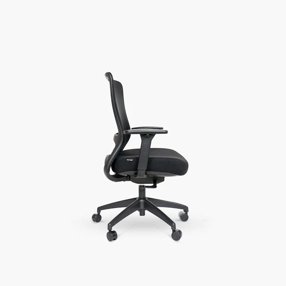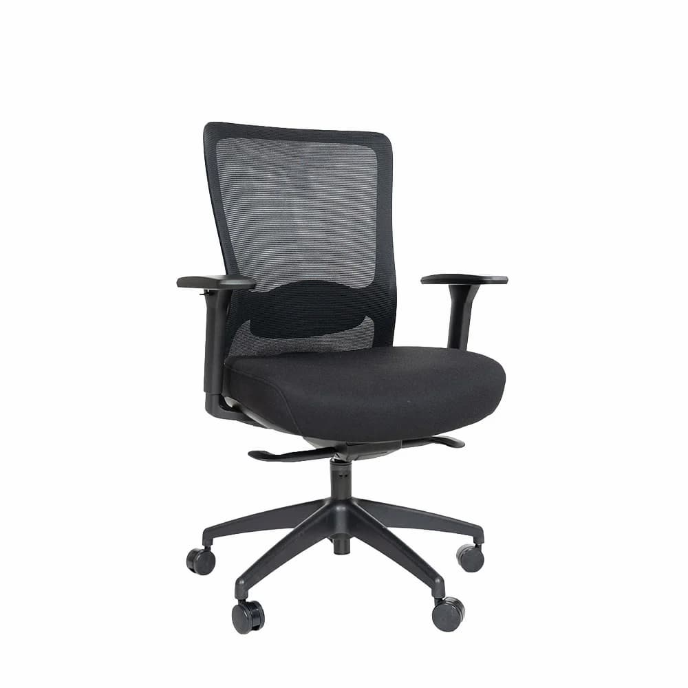 Лумбалната опора се регулира по височина, за да пасне на различни типове тяло. Регулирането на дълбочината на седалката подпомага правилната стойка при продължително седене. Трипосочно регулируемите подлакътници осигуряват допълнително удобство.
