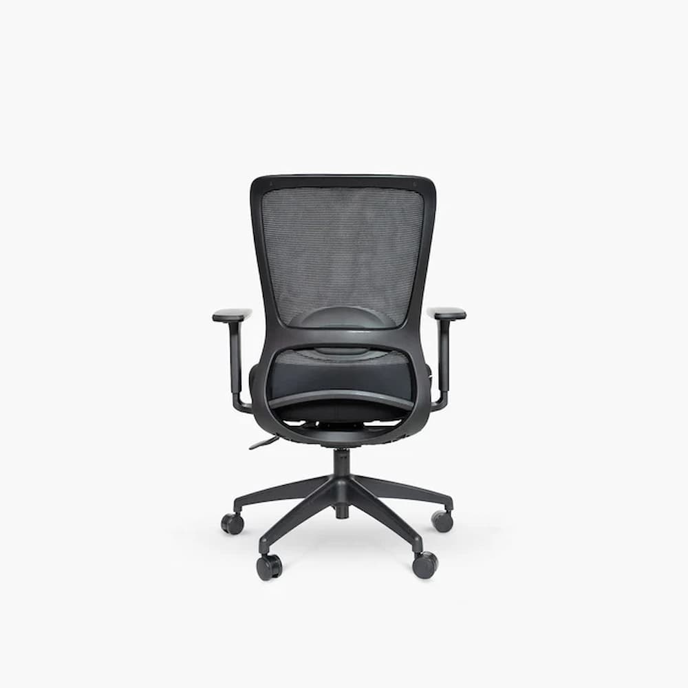 Мрежестата облегалка се адаптира естествено към движенията на тялото. Това създава балансирано ергономично усещане без излишна сложност.