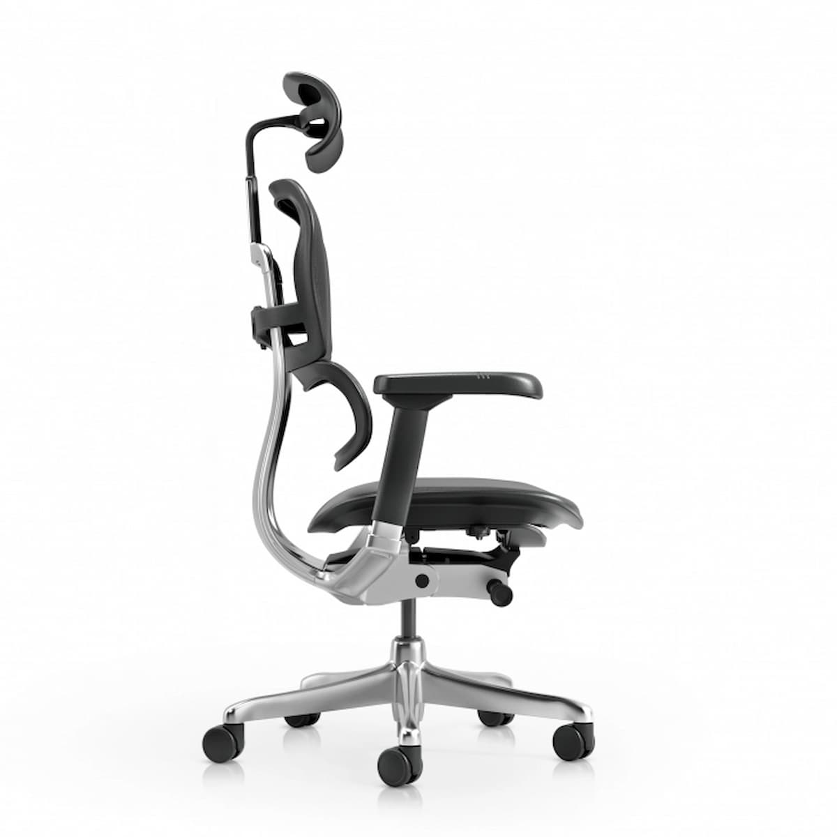 Подлакътниците са 5D регулируеми, а облегалката за глава е 2D регулируема. Конструкцията е от полиран алуминий, което гарантира стабилност и елегантен вид.