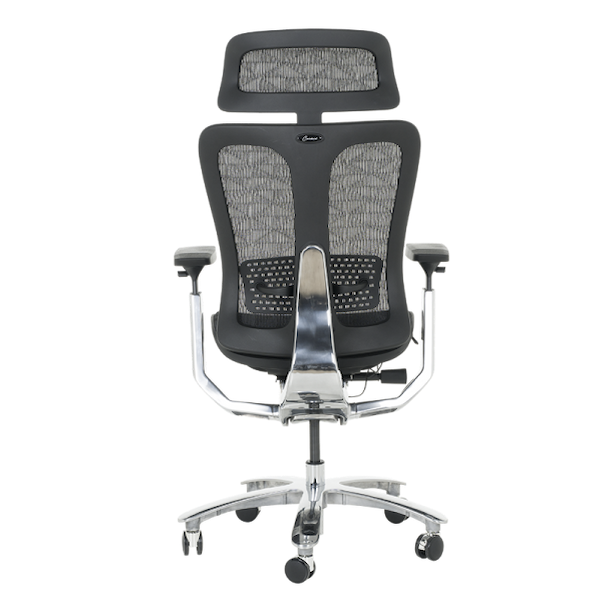 Облегалката и седалката са изработени от висококачествена дишаща мрежа, която осигурява оптимална циркулация на въздуха и предотвратява задържането на топлина. Ергономичната конструкция следва естествената извивка на гърба, а лумбалната опора поддържа правилна стойка и облекчава напрежението.