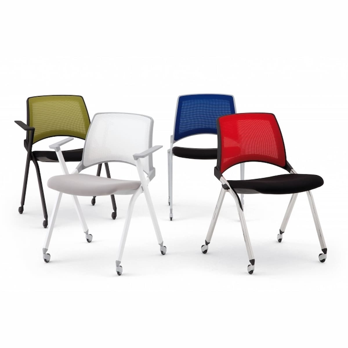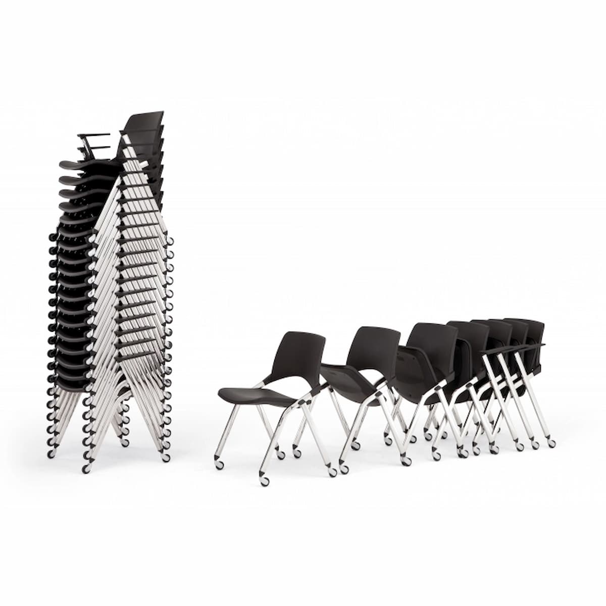 Основата е налична в черен или хромиран вариант с колела за лесно преместване. Сгъваемата седалка позволява бързо и удобно стифиране в редица до 18 броя, а при нужда може да се организира в колона до 10 броя.