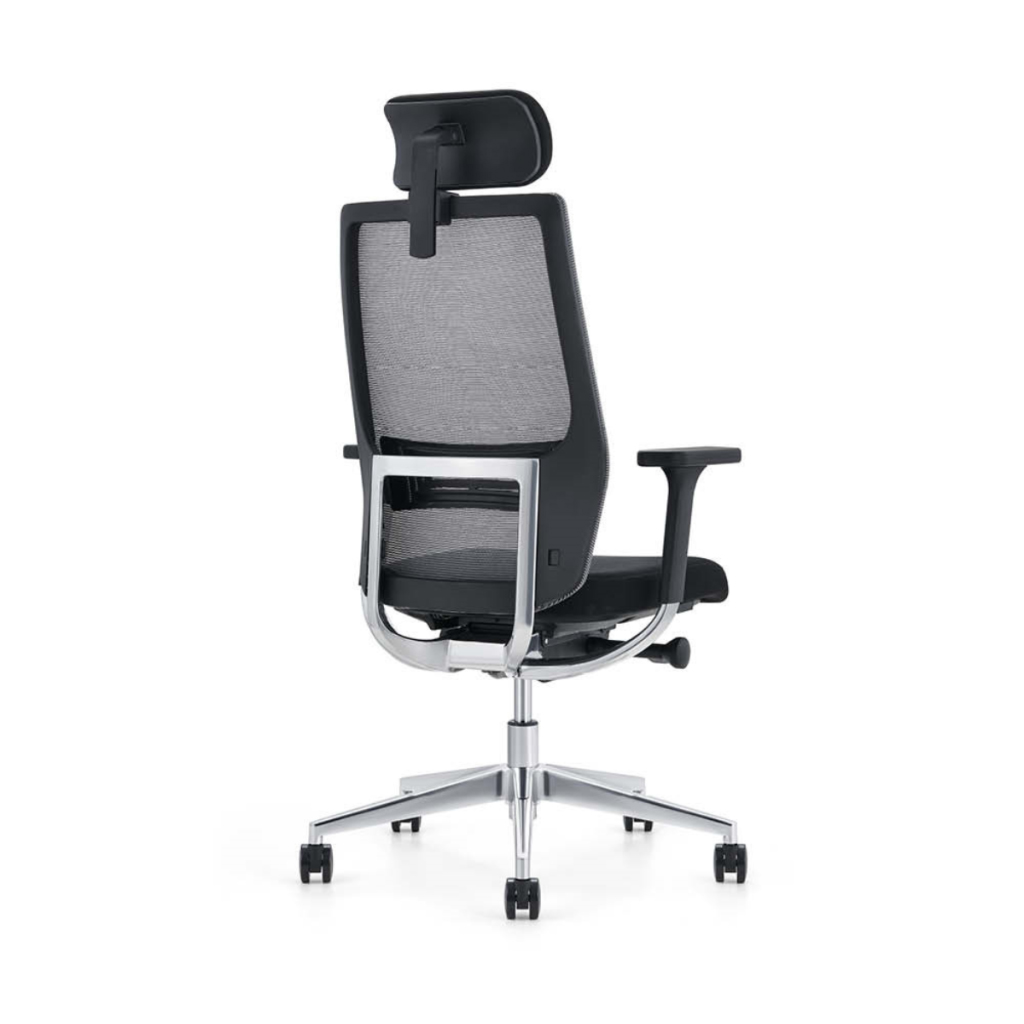 За максимално удобство седалката се регулира по дълбочина до 50 мм, а облегалката – по височина до 80 мм. 3D подлакътници, регулируема лумбална опора и 2D подглавник с настройка по височина и ъгъл осигуряват допълнителна ергономия. Седалката е изработена от високоплътностен дунапрен (65 кг/м³), тапициран в черна дамаска, а облегалката е от дишаща черна мрежа.