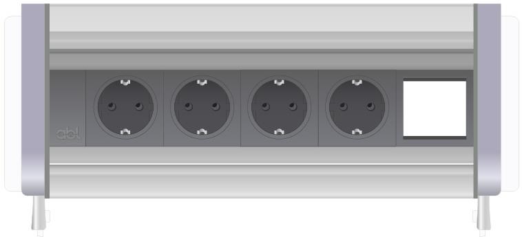 Мебелна кутия с отваряем капак и захранващ модул. Със скоби за фиксиране към плота. С конектор GST18/3 за захранване. Възможност за монтаж на универсални модули IMP.