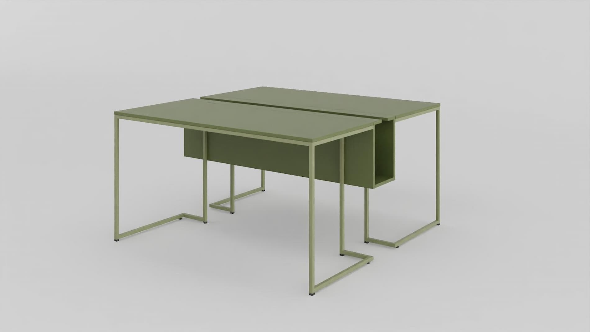 Самостоятелното Офис бюро Aria има два варианта: с челен панел или с кутия за кабели и контакти. Има възможност за поставяне на тапицирани и нетапицирани прегради, кашпа с/без осветление, кутия за компютър или контейнер с две чекмеджета.
