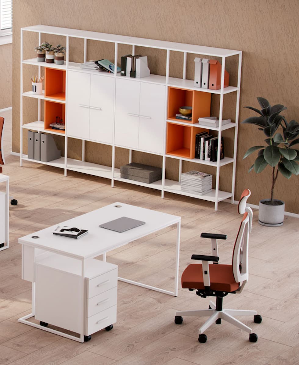 Бюрата се допълват идеално със Стелажна система АРИА, която предлага многобройни възможности за организиране на офис пространството.