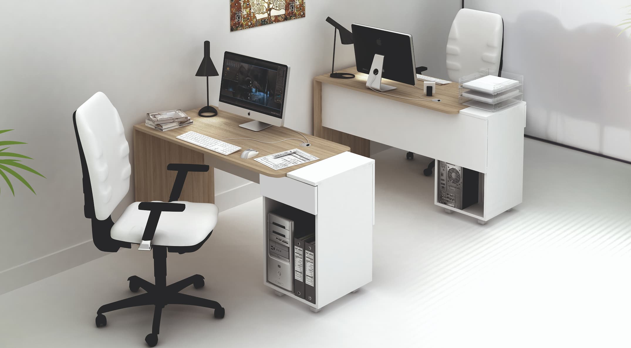 Офис бюро Compact е едновременно семпло и интересно решение, което предлагаме в комбинация от два цвята и в няколко различни размера.