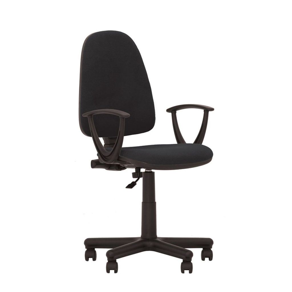Prestige Steel – ергономичен офис стол с хромирана основа, регулируема облегалка и фиксирани подлакътници. Издръжливост и комфорт до 120 кг.